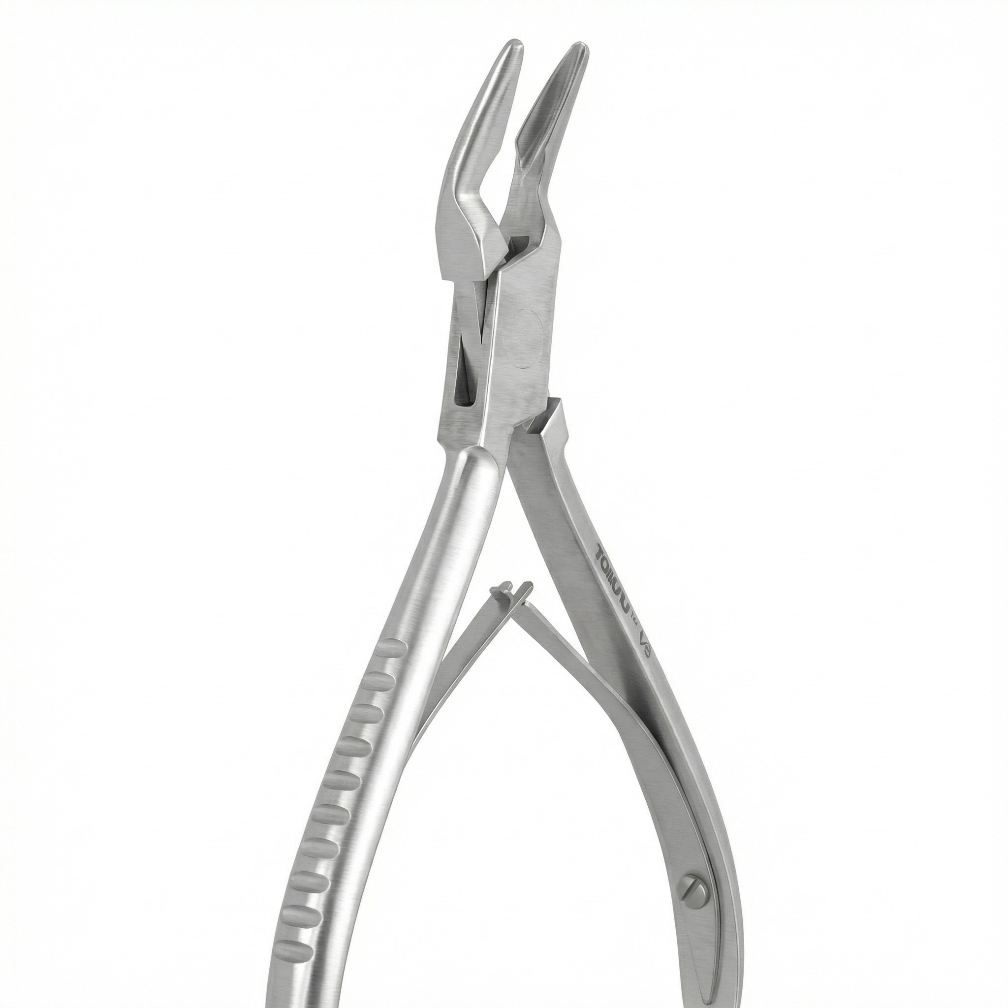 Precision bone rongeur for the removal of the sharp edges of the alveolar crest of the bone following tooth extraction.