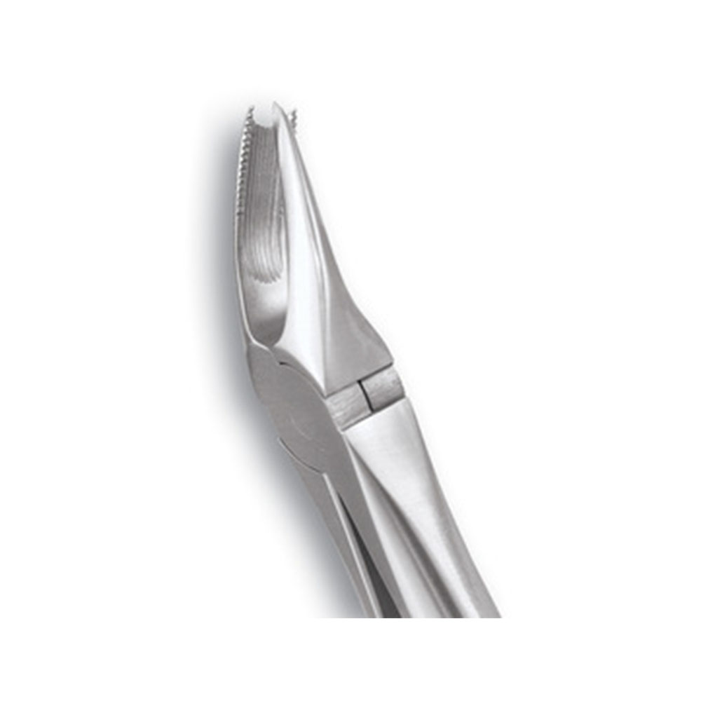 The handles of these forceps are ergonomically shaped to allow oral surgeons to apply a maximum amount of force comfortably during extractions.