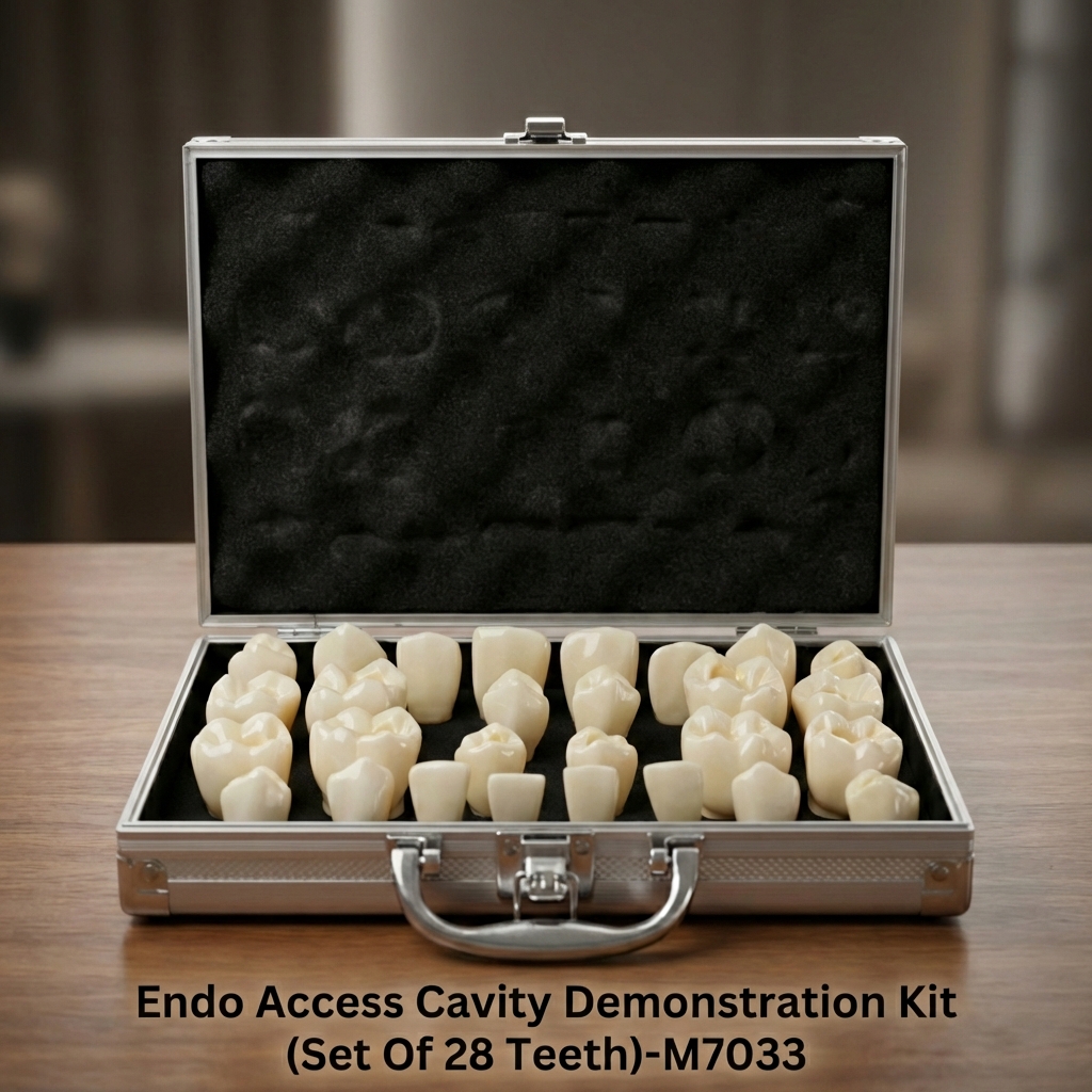 Comprehensive 28-tooth endodontic access cavity demonstration kit designed to train students on access cavity design with lifelike accuracy and durable material construction.