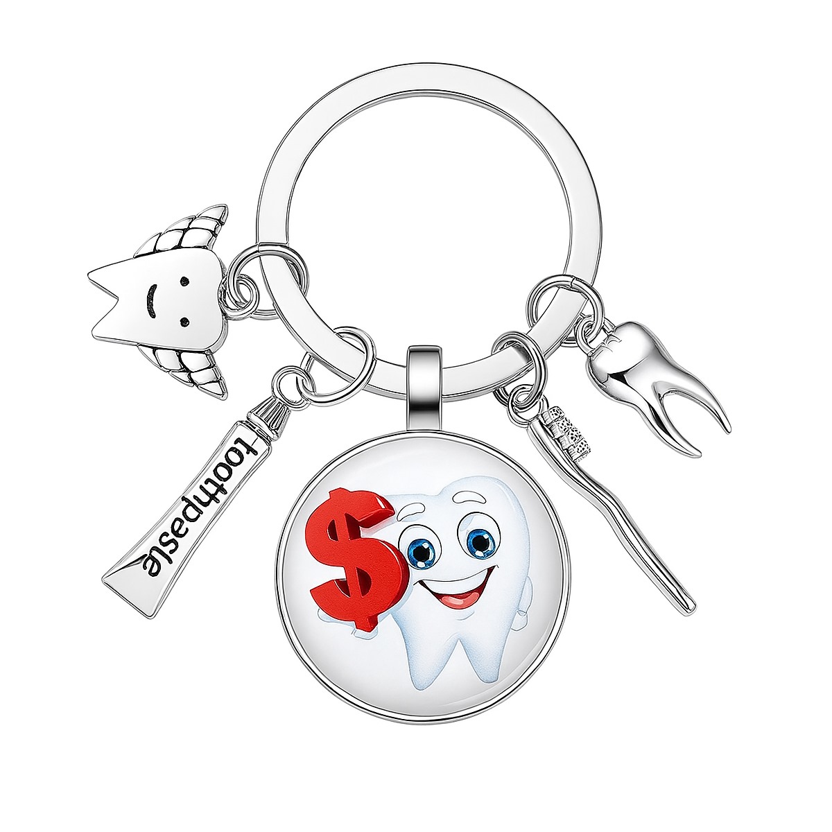 Elegant dental gift keychain with glossy tooth charm and dental cabochon, perfect for dentists, students, and daily stylish key organization.