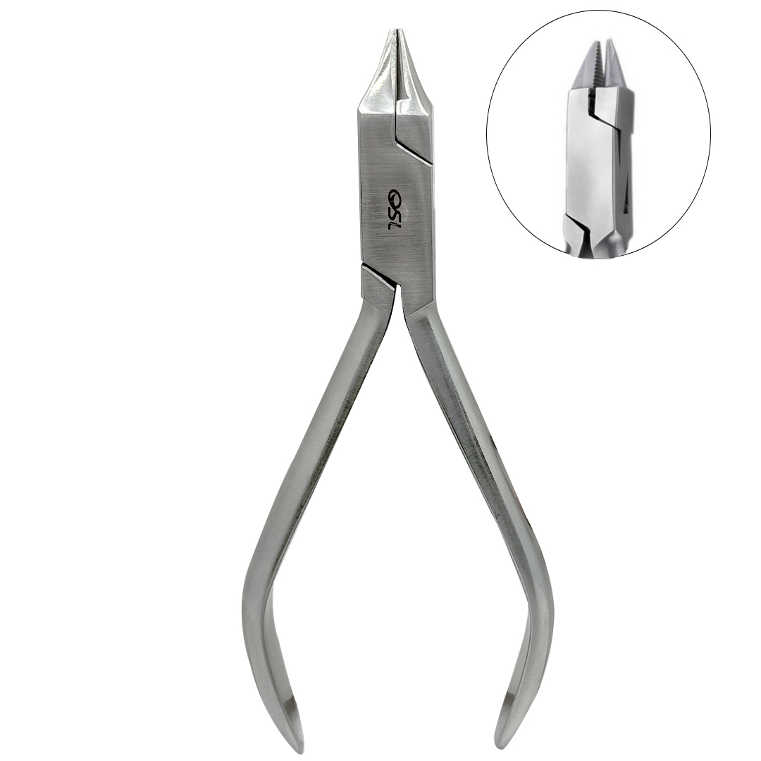 Stainless steel plier with serrated/smooth tips for precise orthodontic wire bending