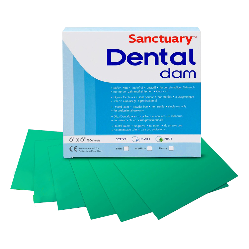 The Sanctuary Rubber Dam Sheet 6x6 (Green Mint) is of medium thickness. It provides optimal flexibility and ease of handling, making it suitable for e...