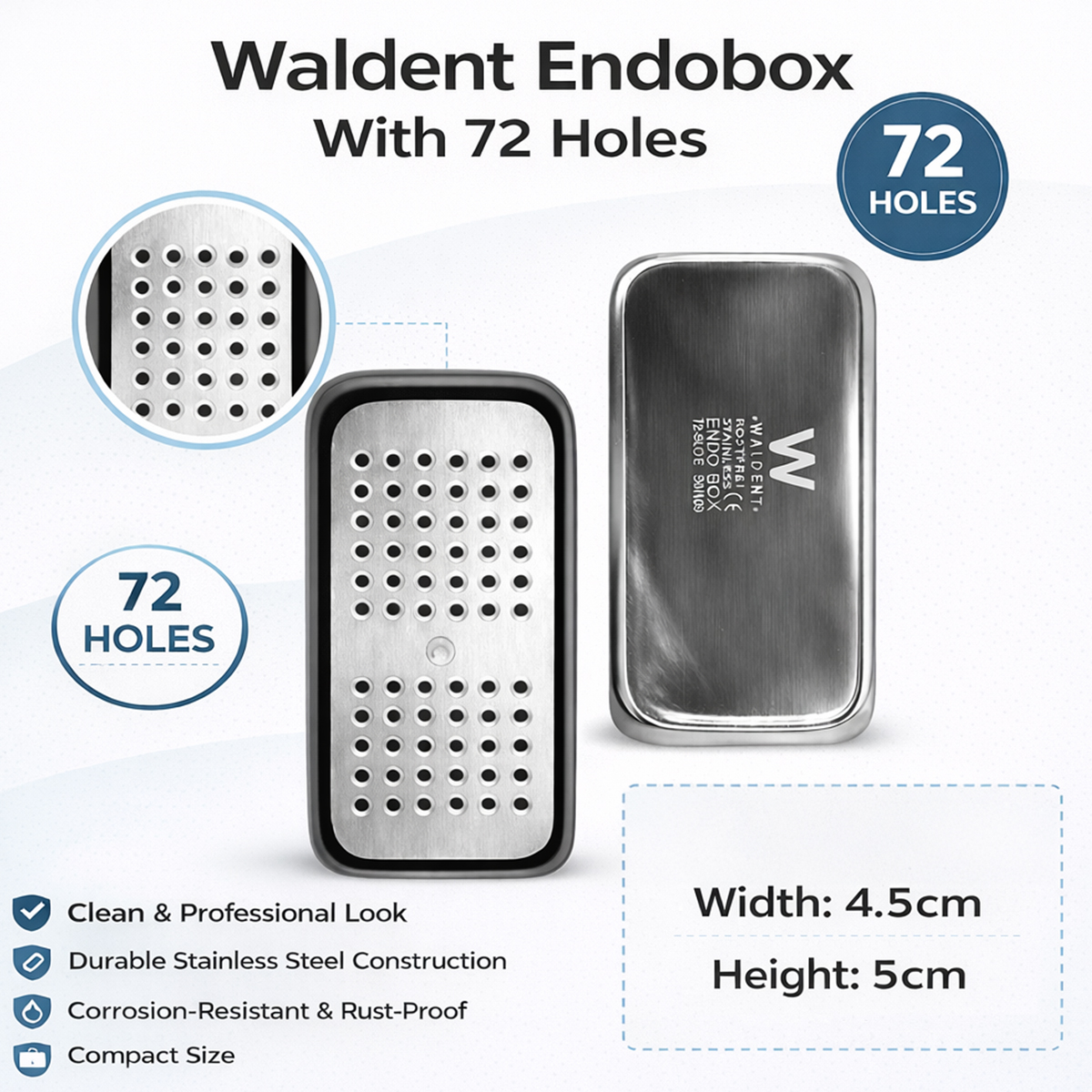 The Waldent Endobox With 72 Holes (60/109) should be opened before autoclaving.